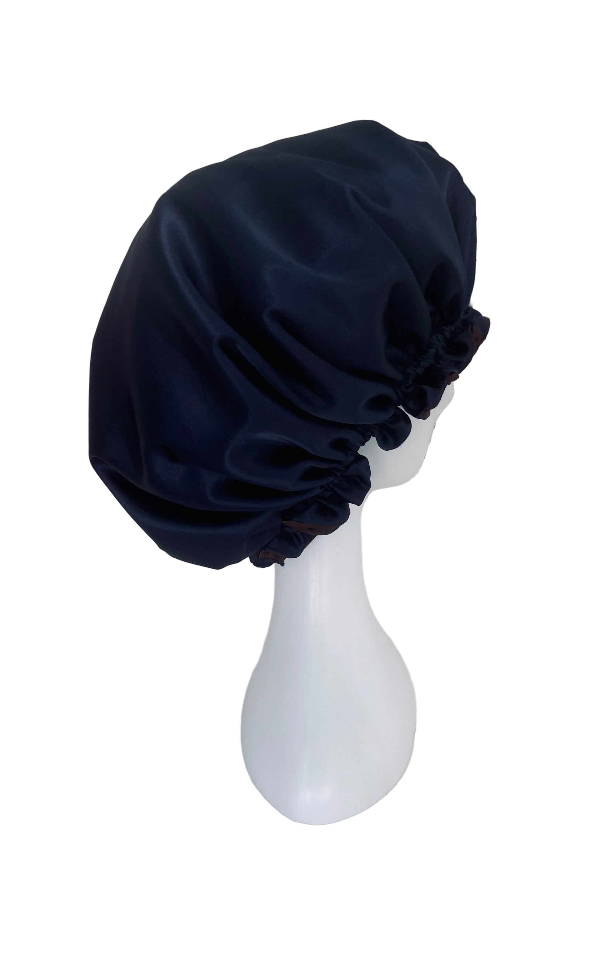 OVERSIZED ADJUSTABLE HAIR BONNET SATIN - DARK CHOCOLATE & NAVY